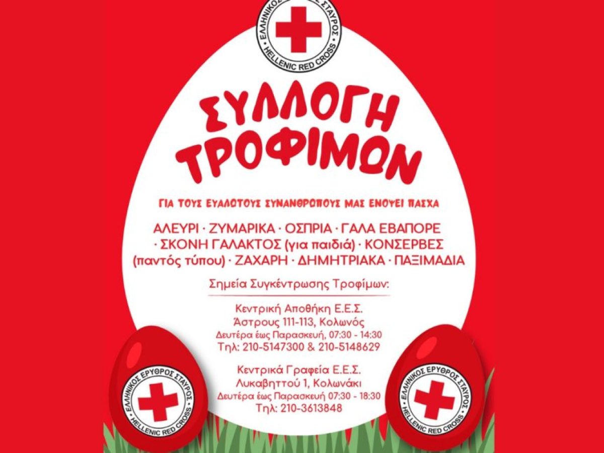 Ο Ελληνικός Ερυθρός Σταυρός απευθύνει κάλεσμα για συγκέντρωση τροφίμων για τις ευάλωτες οικογένειες ενόψει Πάσχα